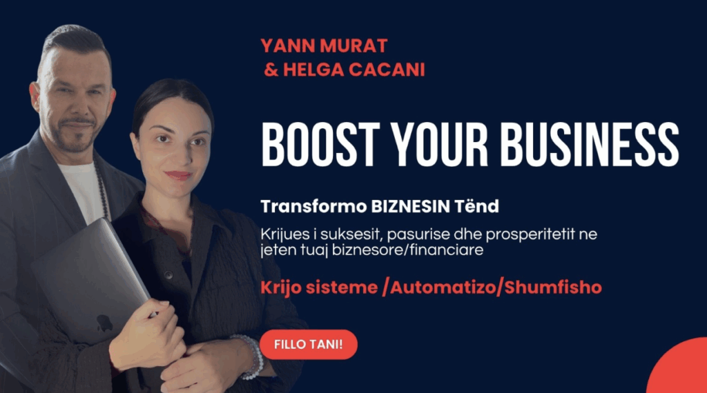 BOOST YOUR BUSINESS është një program online prej 3 muajsh, i krijuar për të të ndihmuar të krijosh ose të rritësh një biznes fitimprurës falë IA-s.